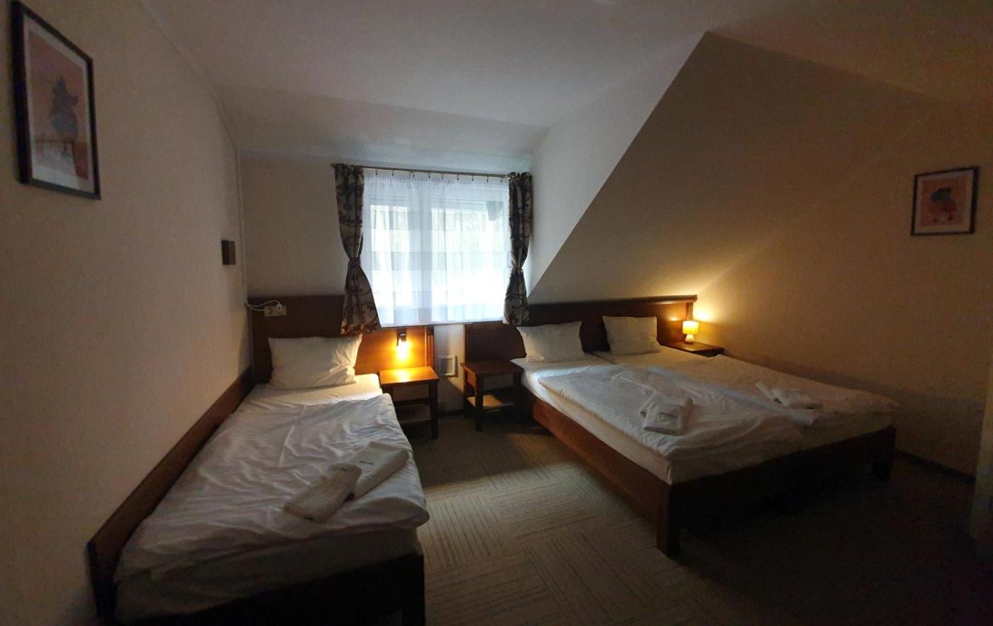 Pokój Trzyosobowy typu Standard. Offering free toiletries, this triple room includes a private bathroom with a shower. The triple room offers a flat-screen TV, a wardrobe, a carpeted floor and heating. The unit offers 3 beds. Pokój Trzyosobowy - 3 osobowy. Powierzchnia pokoju ok.: 25 mkw.