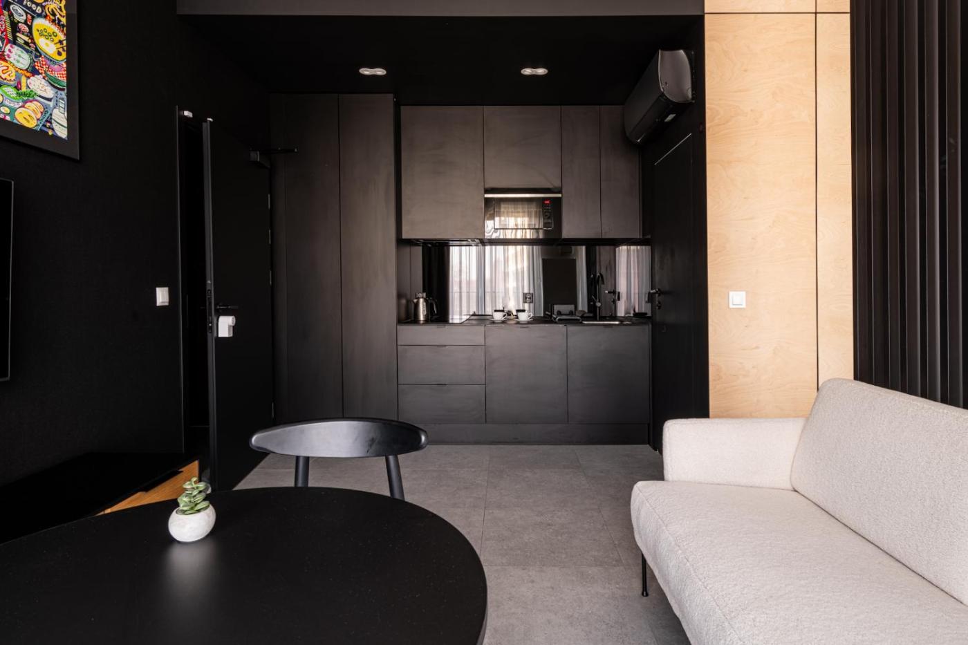 Studio z łóżkiem typu queen-size. Guests can make meals in the kitchenette that has a stovetop, a refrigerator, kitchenware and a microwave. This air-conditioned studio is comprised of a TV with streaming services and a private bathroom. The unit has 1 bed. Studio - 2 osobowy. Powierzchnia pokoju ok.: 20 mkw.